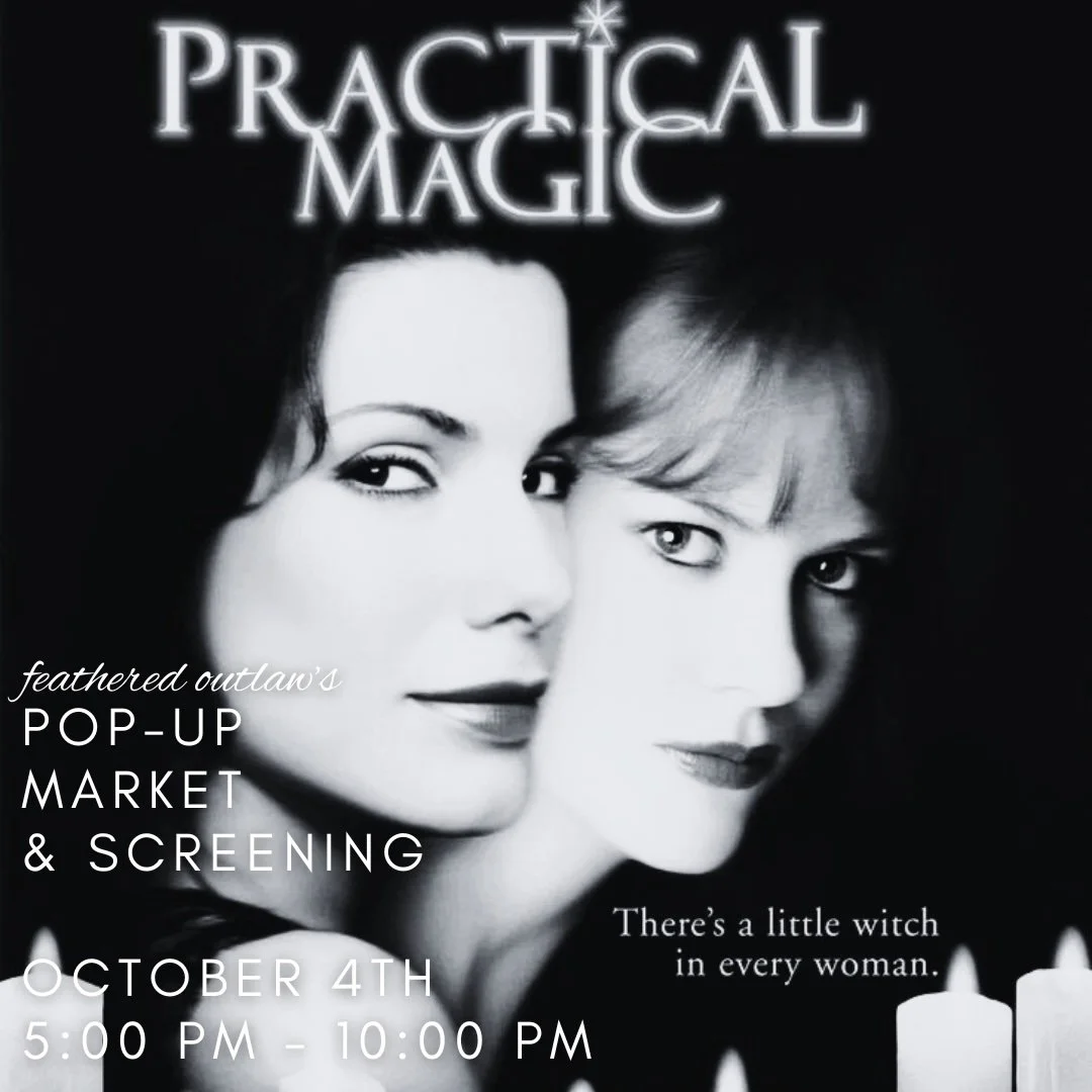 Alameda Theatre, 2317 Central Ave, AlamedaJoin us for one enchanting night only as Feathered Outlaw takes over the historic Alameda Theatre for a special screening of the cult classic Practical Magic—paired with a magick-infused pop-up market inside the theater itself. From 5–10 PM, explore a curated selection of vendors. The pop-up market is free to attend. Then, as the sun sets, head into the grand main theater for a screening of Practical Magic, the beloved story of sisterhood, spells, and the beauty of embracing your power. Movie tickets must be purchased directly through Alameda Theatre.