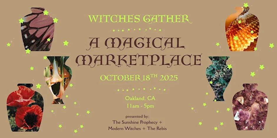 The Sunshine Prophecy, 4121 Piedmont Ave, OaklandJoin us for A Magical Marketplace hosted by Modern Witches, The Rebis and The Sunshine Prophecy. This is a free event and all are welcome. As the veil thins and the nights begin to stretch longer, we are honored to invite you to share space with our witchy community. Offerings include tarot & astrology, spiritual tools, magical wares, other in-person healing services, as well as food and beverages. Our market is FREE to attend.